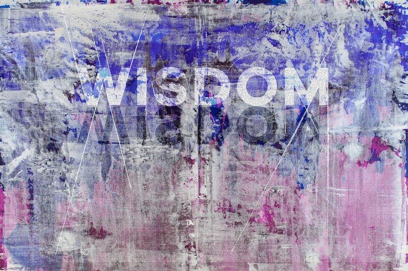 "Teacher" - If you ask God for anything, ask for Wisdom. In this piece, the timeless truth from Solomon emerges from the clouds, sea and land upon the earth. From a distance, the artwork is experienced as the word "Wisdom" breaking from the clouds. As the viewer approaches, greater and greater detail comes into focus within the canvas to ultimately reveal the embodied scripture within the artwork.