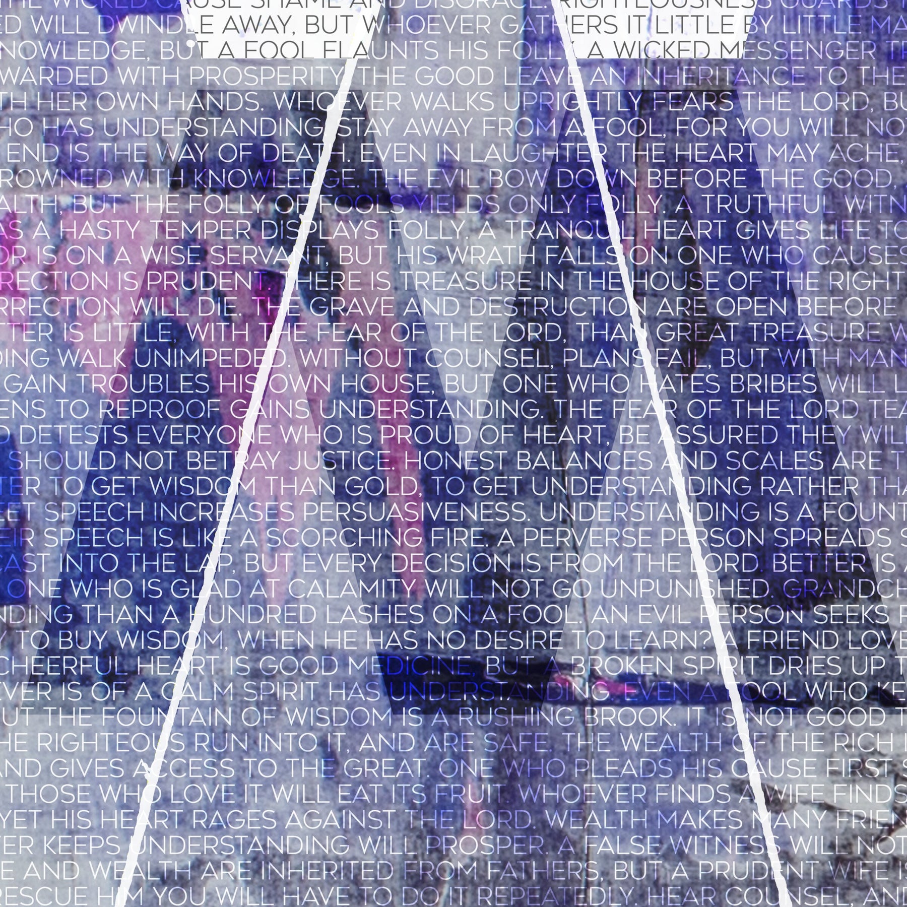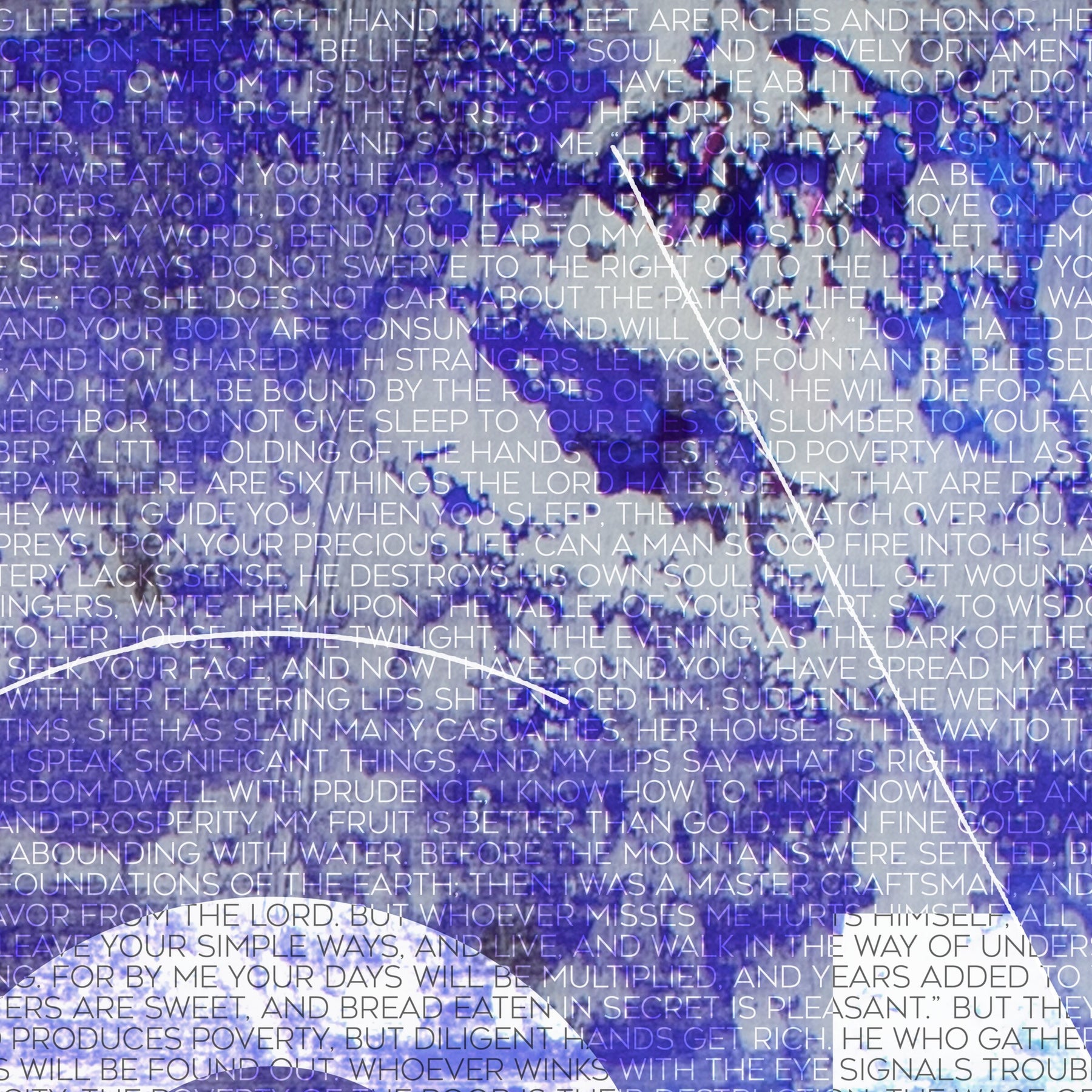 The Psalms & Proverbs collection exhibits an entire book narrative as a single linear page of unenumerated text to visually contextualize the book as a singular uninterrupted visual expression of truth, unencumbered by pages and numeric cataloguing. All scripture referenced is DASV [Digital American Standard Version]
