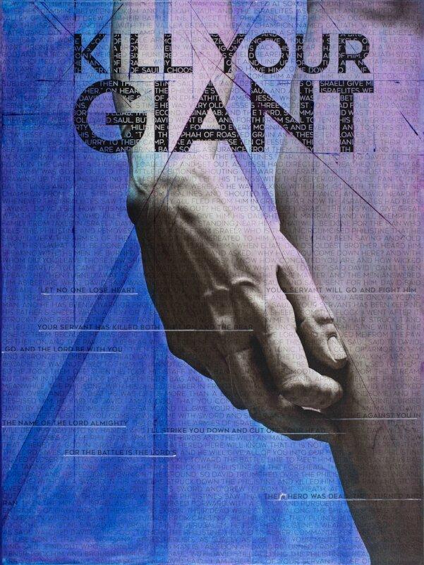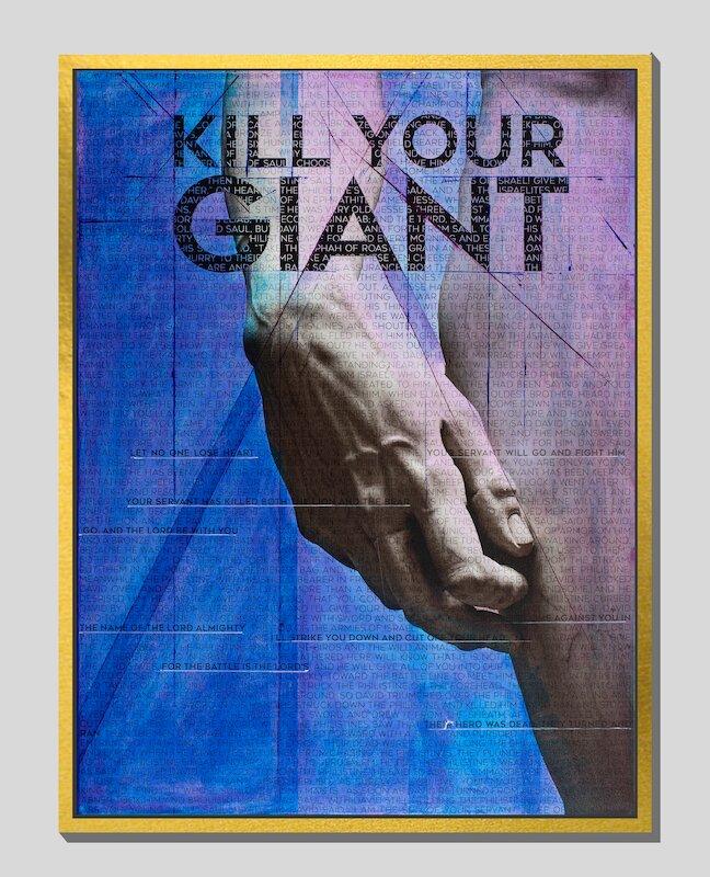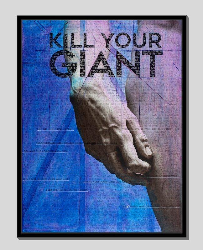 The Thematic Collection for the KILL YOUR GIANT SERIES exhibits the linear narrative of 1 Samuel 17 as a single linear page of unenumerated text to visually contextualize the book as a singular uninterrupted visual expression of truth, unencumbered by pages and numeric cataloguing. All scripture referenced is DASV [Digital American Standard Version] ]